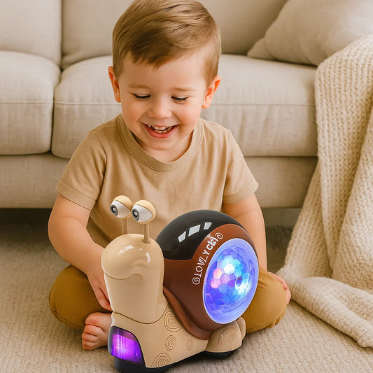 Świecący i grający muzykę ślimak zabawka do raczkowania