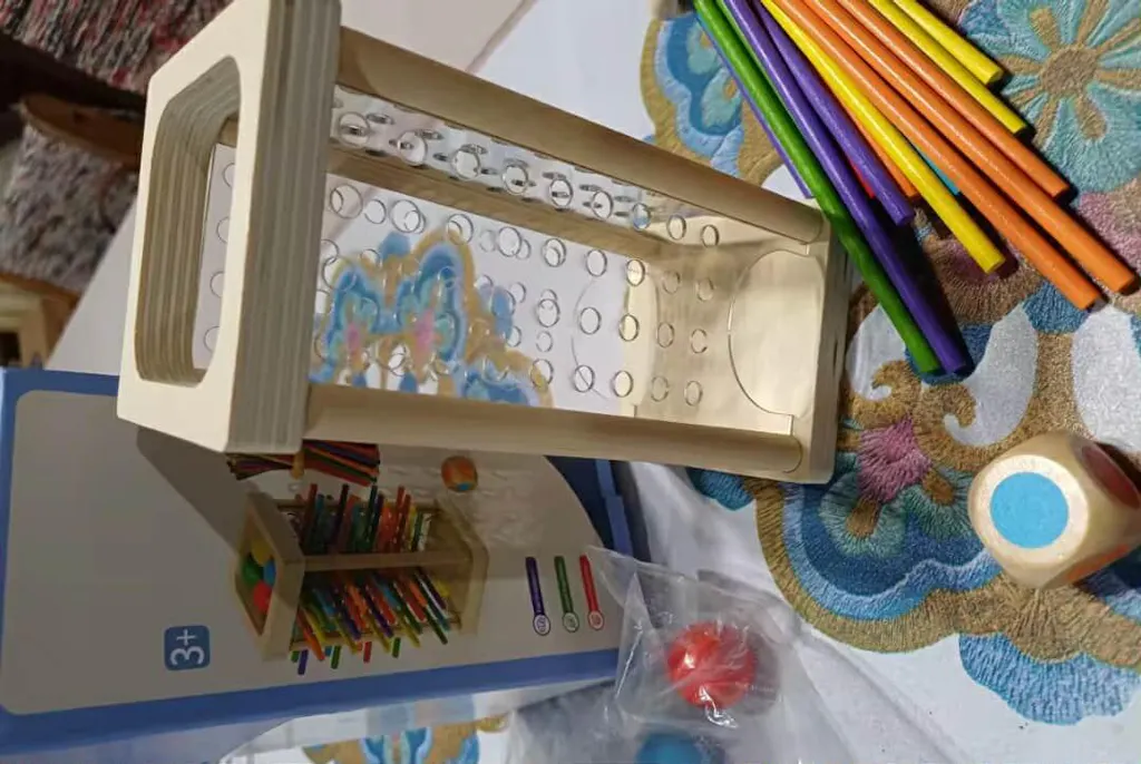 Mała uwielbia układać patyczki i obserwować spadające kulki. Produkt jest starannie wykonany i bezpieczny.