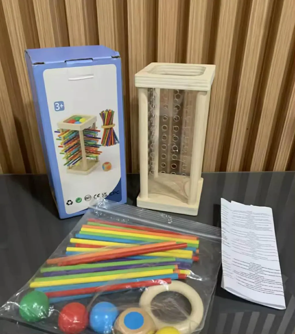 Ta edukacyjna drewniana gra zręcznościowa 3w1 z kulkami i patyczkami zachwyca zarówno dzieci, jak i rodziców. Dzięki żywym kolorom, naturalnemu drewnu i trzem ekscytującym trybom gry wspiera koncentrację, motorykę małą oraz myślenie logiczne w sposób zabawowy. Niezależnie od tego, czy służy jako gra zręcznościowa, ćwiczenie rozpoznawania kolorów czy wyzwanie strategiczne – tutaj zabawa spotyka naukę!