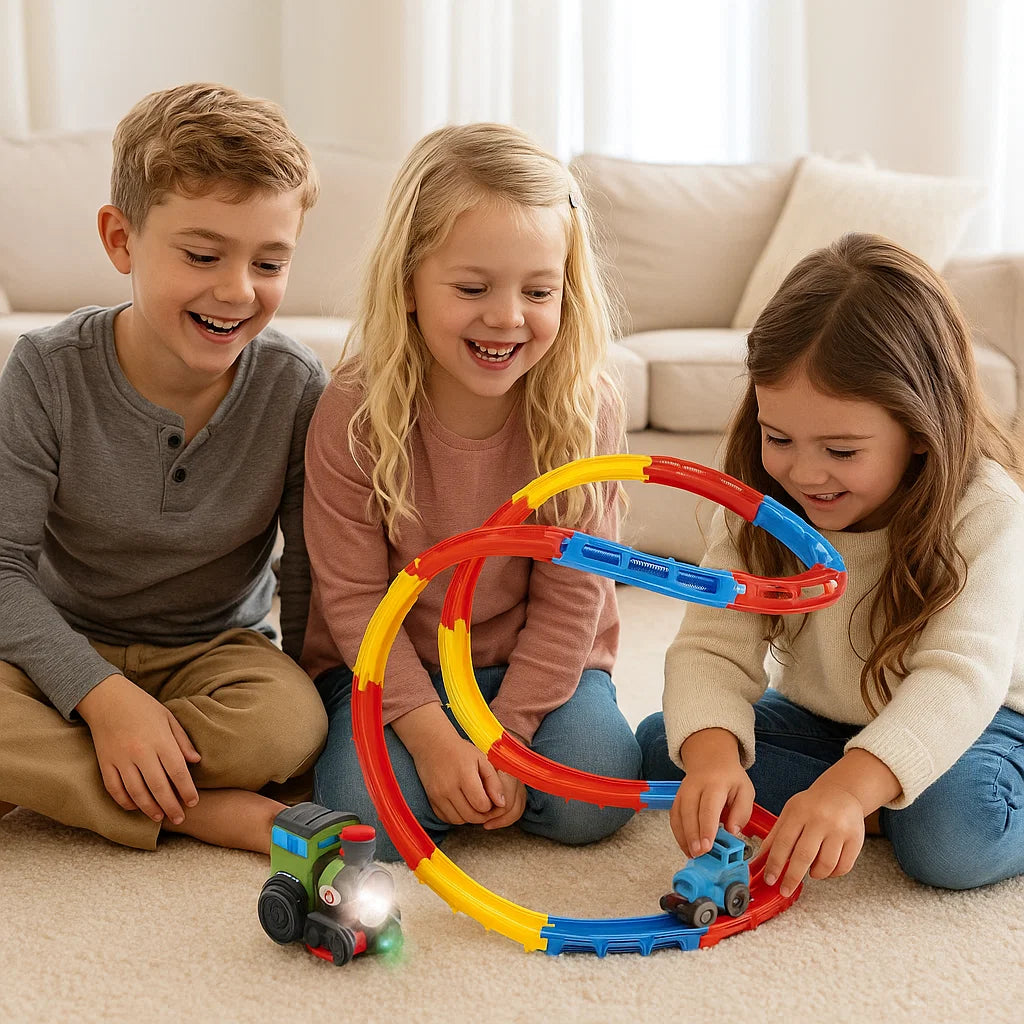 Z kolejką górską dla dzieci maluchy przeżyją pełną emocji jazdę! Mały pociąg pędzi przez ekscytujące pętle i zakręty, wywołując uśmiech na twarzach dzieci. To interaktywna zabawka, która zapewnia akcję i radość, a jednocześnie wspiera rozwój motoryki i zrozumienie ruchu.