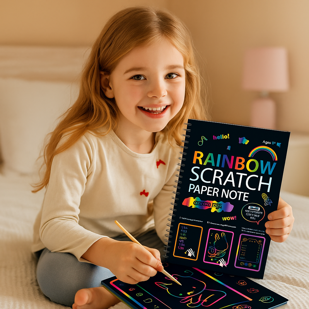 - 🌈 Hipnotyzujący efekt kolorów przy każdym ruchu – Ukryta tęcza ujawnia się z każdym zadrapaniem, wzbudzając radość i zachwyt.