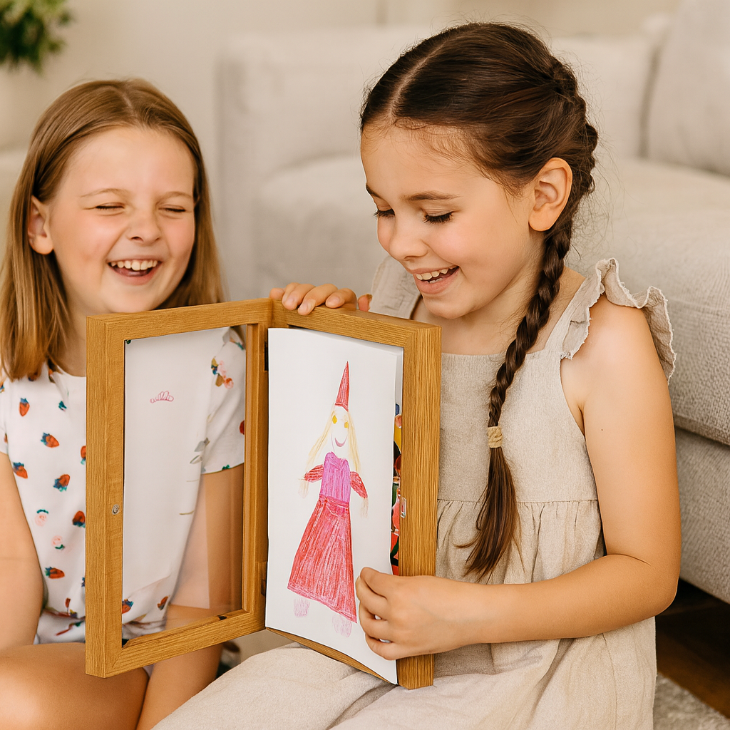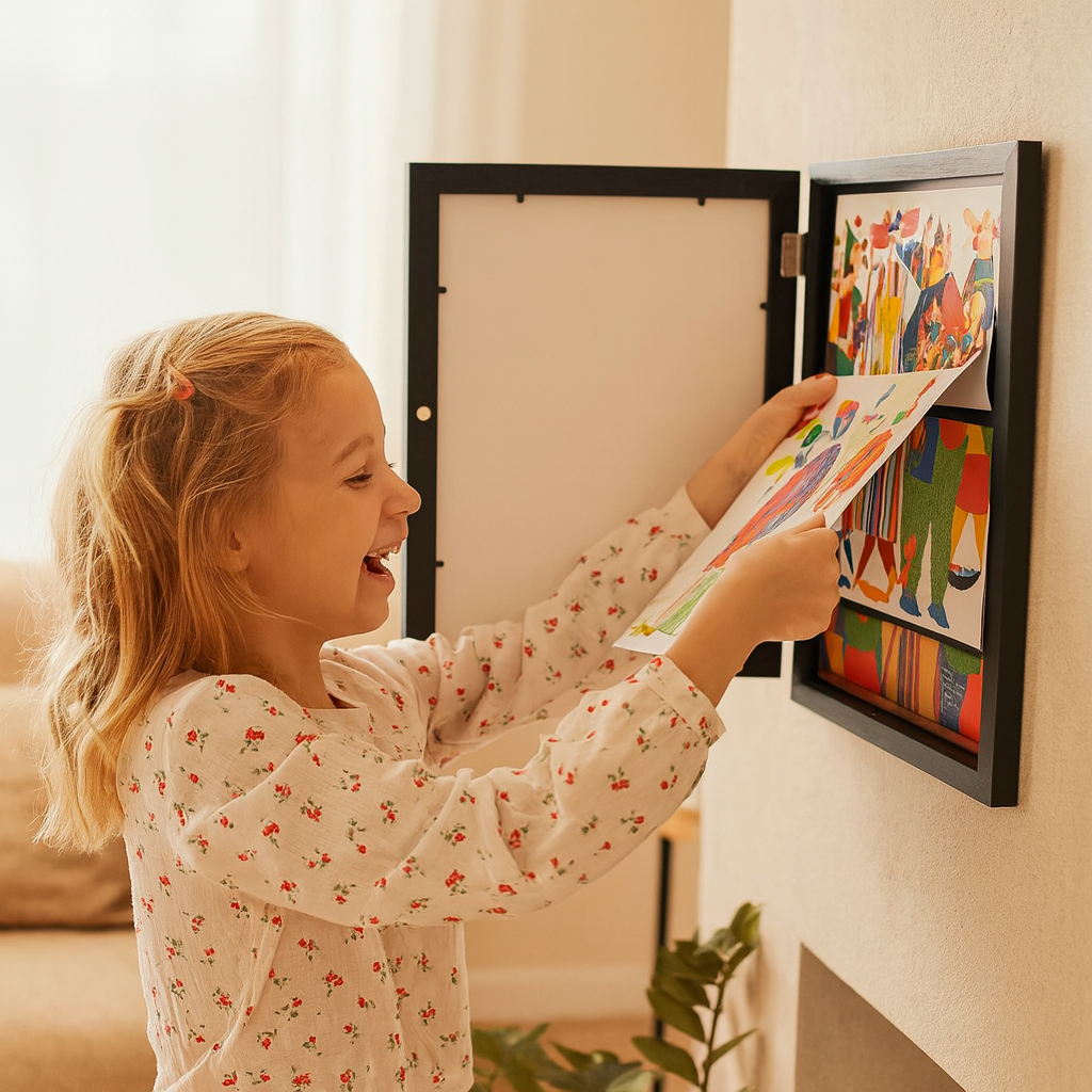 - 🖼️ Łatwa obsługa – Dzięki sprytnemu mechanizmowi otwierania rysunki można szybko i wygodnie wymieniać.